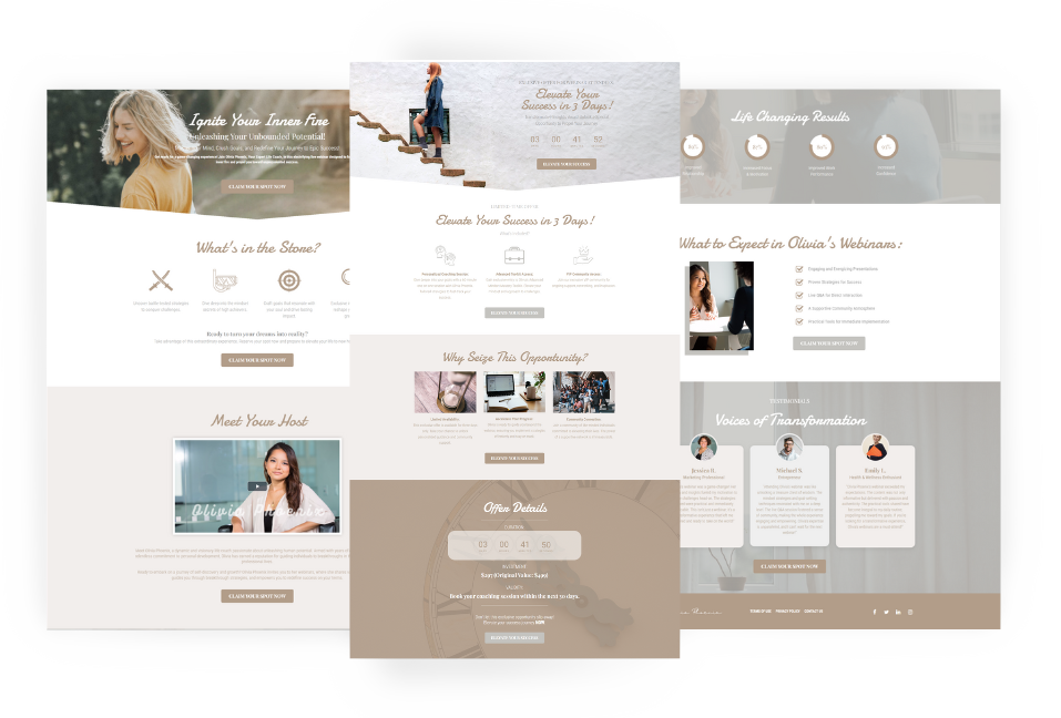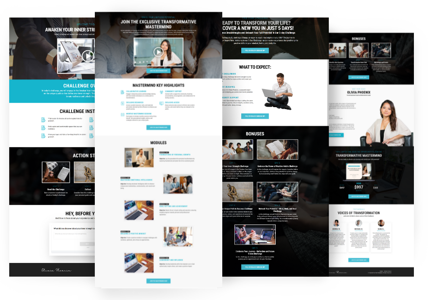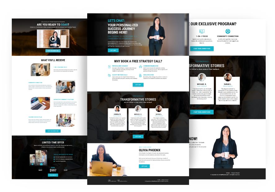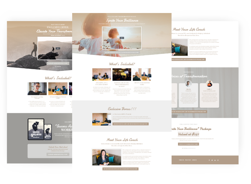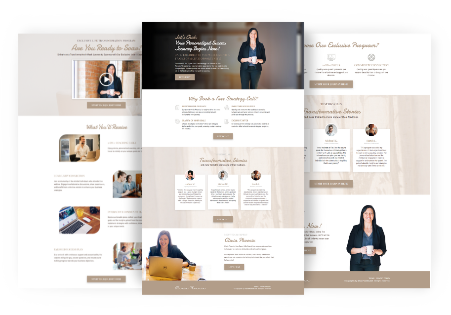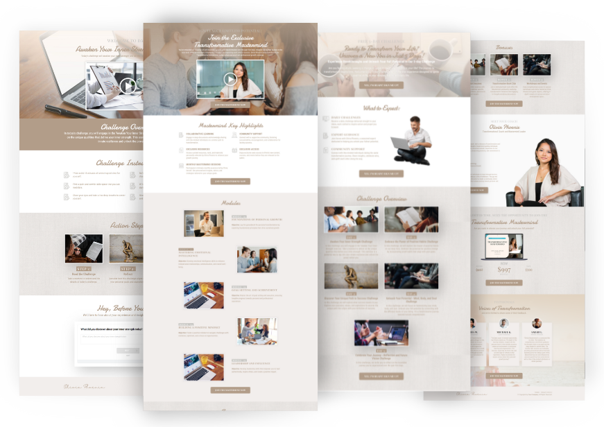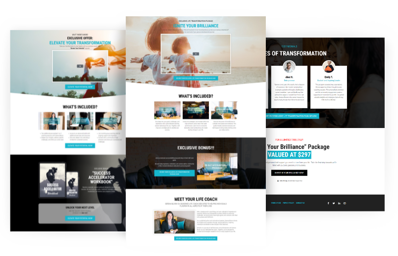Select any 2 of our 7 Pre-Made, High-Converting Coaching Funnels. Each funnel is designed for a specific coaching niche and targets the unique needs of your ideal client.