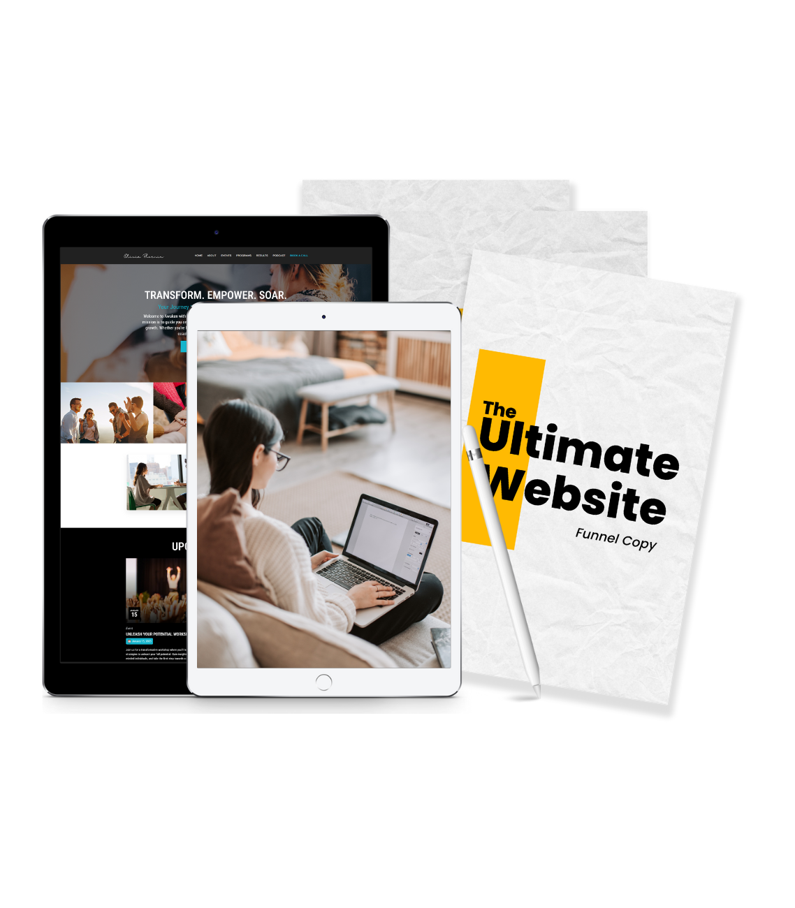 YOUR WEBSITE, FUNNELS, CALENDAR AND EVEN YOUR OWN ONLINE COURSE ALL INCLUDED. NO TECH HEADACHES. WE DO IT ALL FOR YOU!