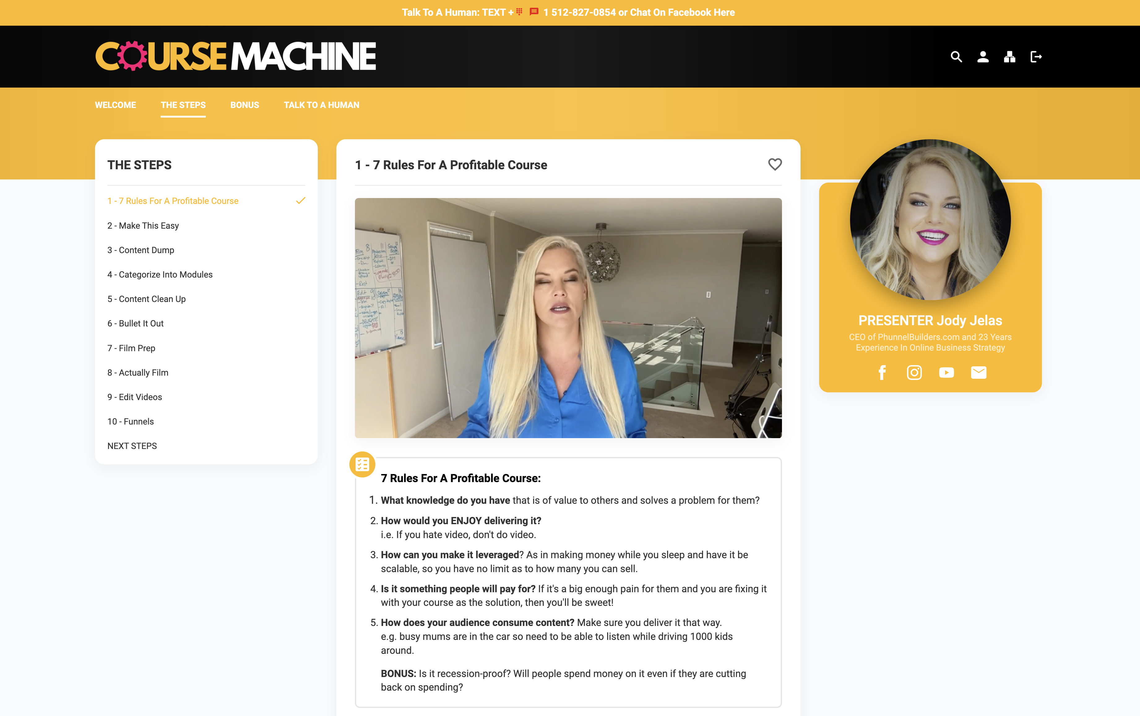 If you are asking a question, chances are others are too, so quite often Jody or the team will make a video to answer your query and put it in the Course Machine video vault to catapult you along the process.